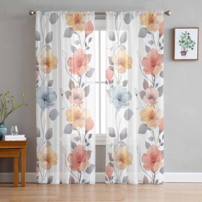 Главная » Все для дома Расписанные вручную цветы листья прозрачные шторы для детской спальни гостиной вуаль оконные шторы тюль занавески W135 x H114cm Просмотров 2 Modern home kitchen