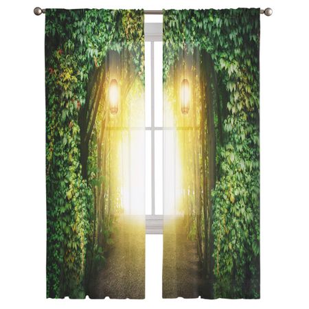 Растения Лес Освещение Листья Сад Зеленый Тюль Прозрачные Оконные Шторы Для Гостиной Спальни Вуаль Органза Шторы Драпировки W135 x H115cm x1