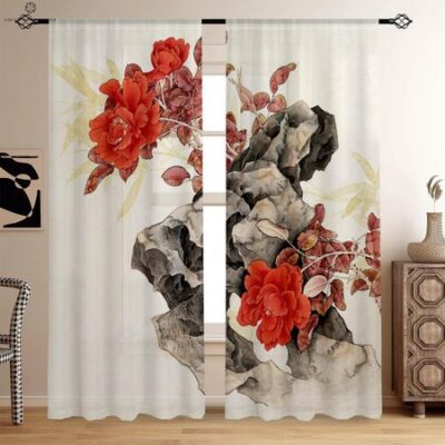 Ретро Цветочный Пасторальный Стиль Печатные Шторы Спальня Гостиная Кабинет Кухня Шторы Украшение Окна Легко Стирать И Ухаживать W50xH130(CM)x2PCSGrommet Top