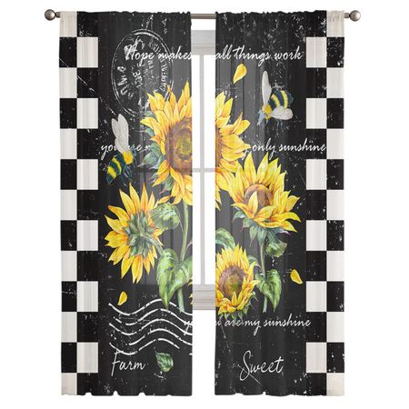 Главная » Все для дома Ретро Цветок Подсолнух Пчела Шторы на окна из шифона Тюль Шторы для дома Гостиная Фон Украшения 135W x 114H(cm) Просмотров 14 A Family Of Home Textiles