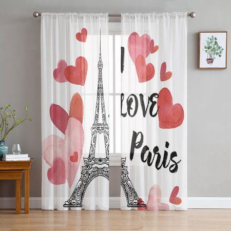 Ретро Лебедь Любовь Тюлевые Шторы на День Святого Валентина Гостиная Спальня Декор Шифоновая Прозрачная Вуаль Шторы Кухонные Оконные Шторы 1 PCS W100XH250cmGrommet Top