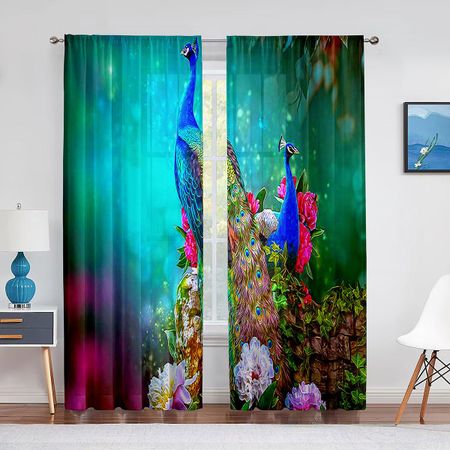 Ретро павлин масляная живопись прозрачные вуалевые шторы для гостиной спальни кухни декор современные прозрачные тюль оконные шторы (W50H130cm)-2pcsGrommet Top