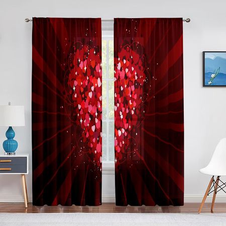 Романтические тюлевые шторы с фиолетовыми сердечками на День святого Валентина, гостиная, спальня, шифоновая прозрачная вуаль, занавеска для кухни, оконные шторы 1 PCS W100XH250cm&Rod Pocket