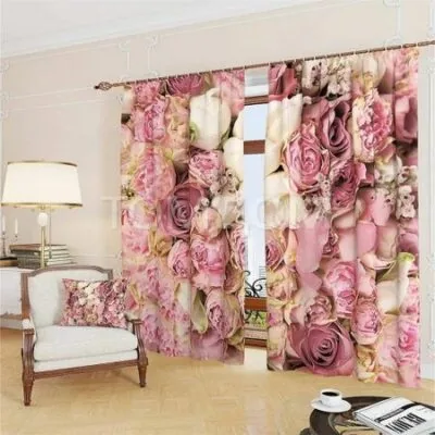 Романтичный весенний свадебный розовый красный цветок современный 2 шт. Бесплатная доставкатонкая оконная штора для спальни гостиной домашнего декора 100W130H(CM)40x51inGrommet Top