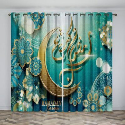 Роскошные мусульманские шторы-зонтики для домашнего декора на праздник Ид Мубарак, 2 панели, занавески для гостиной и спальни на исламский праздник Рамадан 50W130H(CM)x2Grommet Top