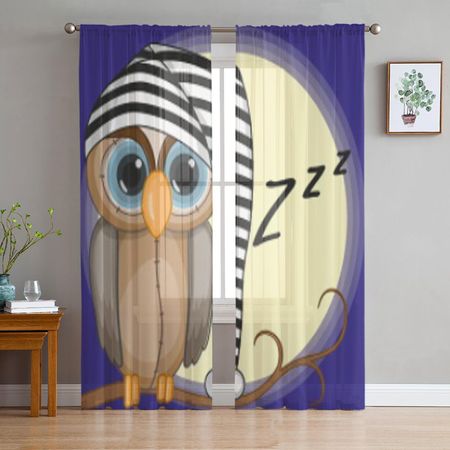 Роскошные шифоновые прозрачные шторы «Сонная сова в кепке» для гостиной, спальни, украшение, вуаль, тюлевая занавеска 135W x 114H(cm)