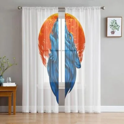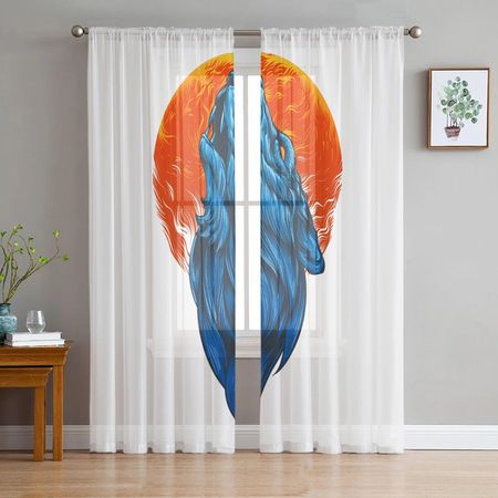 Роскошные тюлевые шторы с изображением белого волка, современная гостиная, кухня, шифоновая занавеска, прозрачная занавеска для спальни 135W x 114H(cm)