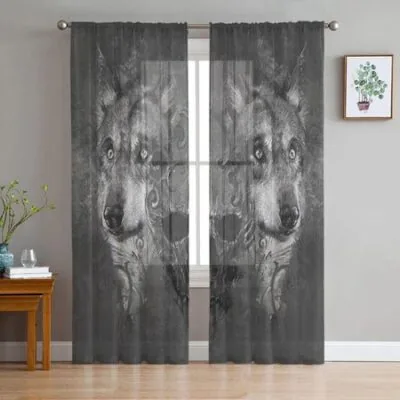Роскошные тюлевые шторы с изображением волка и диких животных, современная гостиная, кухня, шифоновая занавеска, прозрачная занавеска для спальни 135W x 114H(cm)