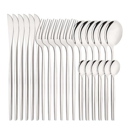 Роскошный золотой набор посуды на 6 человек, набор посуды из нержавеющей стали, нож, вилка, ложка, столовые приборы, набор столовых приборов, столовое серебро, яркий свет серебряный
