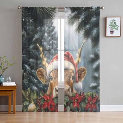 Рождественская акварельная пуансеттия шторы для гостиной спальни украшения дома окна вуаль тюль занавески драпировки W135 x H114cm