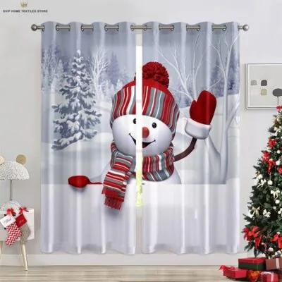 Рождественская елка Снег Праздничное украшение Шторы Мультяшный Пользовательский узор Спальня Столовая Праздничное украшение Шторы 2 штуки W50X130H(CM)X2PCSRod pocket