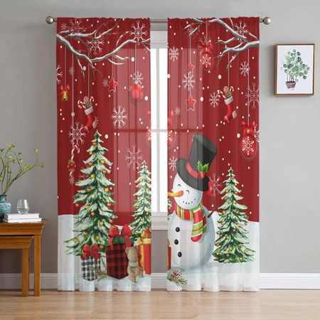 Рождественская елка Снеговик Снежинка Подарок Под дерево Вуаль Шторы Спальня Тюль Оконные занавески Гостиная Прозрачные шторы Портьеры W135 x H115cm x1Grommet Top