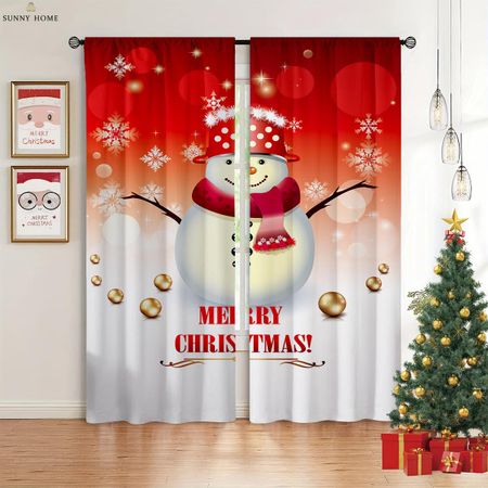 Рождественская машина, рождественская елка, снеговик, напечатанные шторы, праздничные украшения для вечеринок, шторы, легко стирать и ухаживать, 2 шт. W50xH160(CM)x2PCSGrommet Top