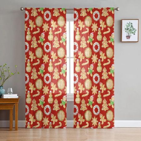 Главная » Все для дома Рождественские акварельные пряничные оконные тюлевые шторы для гостиной, кухни, Рождественский домашний декор, прозрачные шторы из вуали 135W x 114H(cm) Просмотров 10 Yifulin