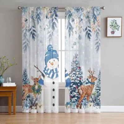 Рождественские и зимние шторы в виде снеговика-пуансеттии для гостиной, спальни, украшения дома, оконные вуали, тюль, занавески, драпировки W135 x H213cm