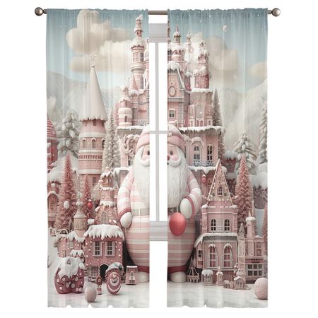 Рождественские прозрачные шторы с Санта-Клаусом и снежинками, рождественские украшения для дома, оконные тюлевые шторы для гостиной, спальни W135 x H114cm
