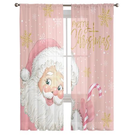 Рождественские прозрачные шторы с Санта-Клаусом и снежинками, розовые прозрачные шторы, рождественские украшения для дома, оконные тюлевые шторы для гостиной, спальни W135 x H114cm