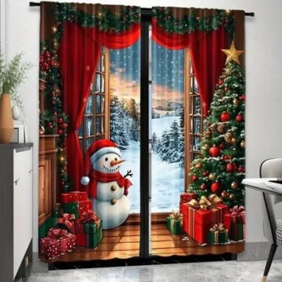 Рождественские шторы из полуполиэстера с 3D-цифровой печатью, светофильтрующие оконные занавески для праздничного домашнего декора, дизайн с карманами на штанге 50W160H(CM)x2PanelGrommet Top