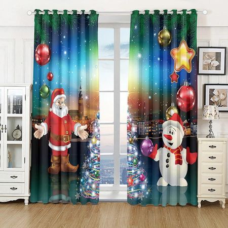 Рождественские шторы с цифровой печатью, 2 шт., полузатеняющие солнцезащитные тонкие тканевые занавески для гостиной и спальни, Новый год 2024 W50xH130(CM)x2PCS-Grommet Top