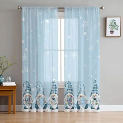 Рождественские синие снежинки гном тюлевые шторы для гостиной прозрачные шторы для спальни рождественские жалюзи вуаль шторы 135W x 114H(cm)