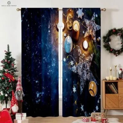 Рождественские затемняющие декоративные шторы, детская комната, спальня, гостиная, балкон, можно сделать на заказ, 2 шт. W100xH130(CM) folioGrommet Top