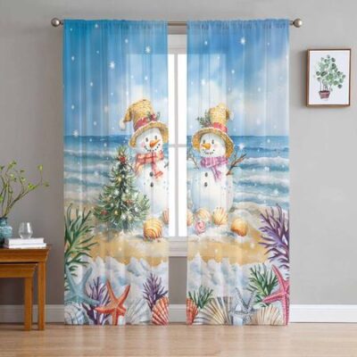 Главная » Все для дома Рождественские зимние пляжные шторы со снеговиком для гостиной, спальни, украшения дома, оконные вуали, тюль, занавески, драпировки W135 x H114cm Просмотров 2 Versatile Home Furnishing