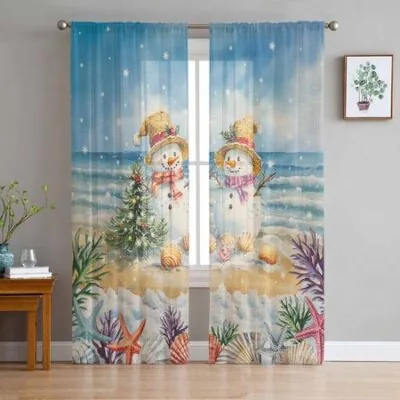Главная » Все для дома Рождественские зимние пляжные шторы со снеговиком для гостиной, спальни, украшения дома, оконные вуали, тюль, занавески, драпировки W135 x H114cm Просмотров 10 Versatile Home Furnishing