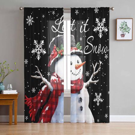 Рождественские зимние шторы со снеговиками и снежинками для гостиной, спальни, украшения дома, оконные вуали, тюль, занавески, драпировки W135 x H114cm
