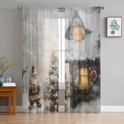 Рождественский гном, лес, снежная сцена, картина маслом, прозрачные шторы, современные газовые шторы для гостиной, спальни, вуалевые шторы из пряжи W135 x H114cm