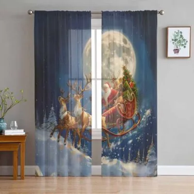 Рождественский Санта-Клаус, подарок лося, лунные шторы для гостиной, спальни, украшения дома, оконные вуали, тюль, занавески, драпировки W135 x H114cm