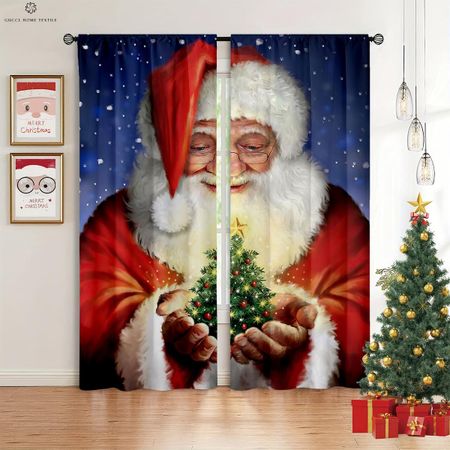 Рождество Новый год Фестиваль Декоративные занавески Рождественская елка Санта-Клаус Мультфильм Печать Спальня Столовая Декоративные занавески W50xH130(CM)x2PCSGrommet Top