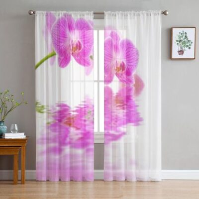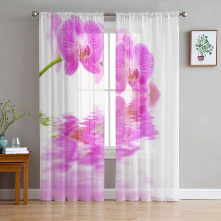 Розовые цветы орхидеи, белые отражения, волнистые водные шифоновые прозрачные шторы для гостиной, спальни, оконная вуаль, тюлевая занавеска 135W x 114H(cm)