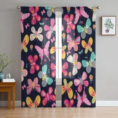 Главная » Все для дома Розовые красочные бабочки оконные шторы тюль современные прозрачные шторы для кухни гостиной спальни шторы украшения W135 x H114cm Просмотров 8 Versatile Home Furnishing