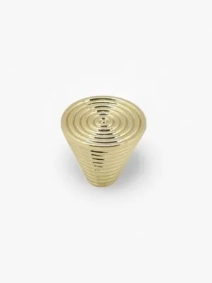 Ручка-кнопка CAPPIO «Лабиринт», золото — накладная конусообразная ручка для мебели. Рельефная поверхность создает удобный захват и акцент в интерьере.Конусообразная форма «Лабиринт»: Объемный дизайн с рельефным узором по спирали.Материал — цинковый сплав: Прочная основа для сложного литья.Покрытие золото: Золоченая поверхность для мебели в классическом или современном стиле.Накладной монтаж: Крепление на фасад винтами, не требует фрезеровки.Применение: Установка в качестве накладной ручки на фасады шкафов, комодов, кухонных гарнитуров и другой корпусной мебели.