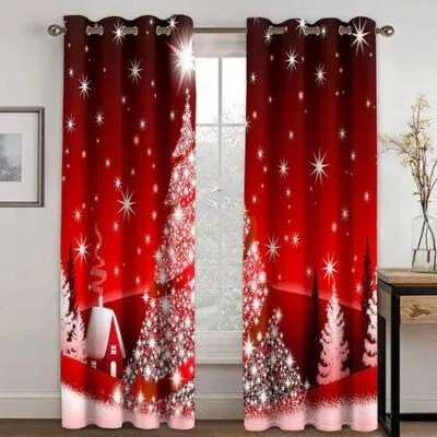 С Новым годом Санта-Снежинка Рождественские красные оконные шторы, шторы для детей, спальни, гостиной, кухни, двери, домашний декор, 2 шт. W50 X H130(CM)X2&Hook