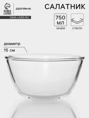 Откройте для себя идеальное сочетание стиля и функциональности с нашим элегантным салатником, который станет незаменимым элементом вашего стола. Объем 750 мл и диаметр 15 см идеально подходят для подачи свежих салатов, закусок и десертов, добавляя изысканность в каждую трапезу.Прозрачное стекло и гладкая текстура делают этот салатник не только практичным, но и визуально привлекательным. Он легко впишется в любой интерьер, подчеркивая ваш безупречный вкус и создавая атмосферу уюта и гармонии.Преимущества:Современный дизайн: лаконичная форма и стильный вид делают салатник привлекательным элементом сервировки.Качество материалов: изготовлен из прочного стекла, что обеспечивает долговечность и устойчивость к повреждениям, сохраняя его первозданный вид на долгие годы.Удобство в использовании: гладкая поверхность облегчает процесс подачи, а форма позволяет удобно накладывать блюда, делая сервировку простой и быстрой.Лёгкость в уходе: можно мыть в посудомоечной машине, что делает его использование максимально комфортным и практичным.Универсальность: идеально подходит для подачи как горячих, так и холодных блюд, что делает его незаменимым аксессуаром на вашем столе.