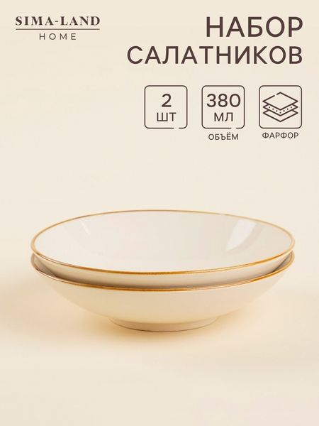 Салатники SL Home «Леггеро», d=18.5 см, набор 2 шт., фарфор, бежевые