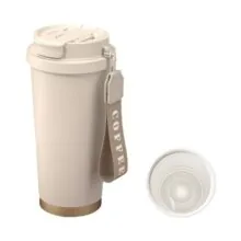 Kamiizumi Tumbler with with Direct Dairy Stainless Keeps Cold or Coffee Easy to Stylish Straw, Ceramic, Lid, Portable, Carbonated, 530ml, Drink, Safe, бежевый