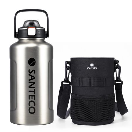 SANTECO Вакуумная Изолированная Вода Большая Сохраняет Холод или Бутылка из Нержавеющей Стали с Совместимая с Прямым Питьем Спортивная Широкая и Серебристая Бутылка,