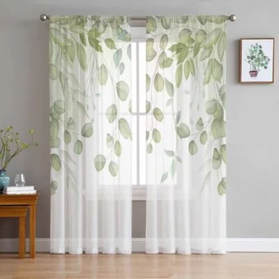 Сельская местность Растения Цветы Акварельные шторы для спальни Тюль Прозрачные шторы Гостиная Домашний декор Вуаль Шторы 135W x 183H(cm)