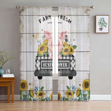 Сельскохозяйственные свежие подсолнухи свиная деревянная текстура планки прозрачные шторы для гостиной современная спальня вуаль тюль занавески на окна W135 x H114cm