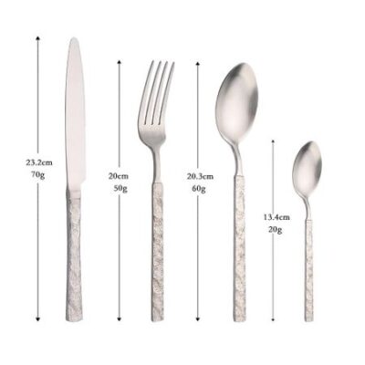 Главная » Все для дома Серебряный матовый набор столовых приборов, серебряный обеденный набор, классический ресторанный набор из нержавеющей стали 304, кухонная свадебная посуда, посуда 1set /4pcs серебряный Просмотров 11 JANKNG HOME