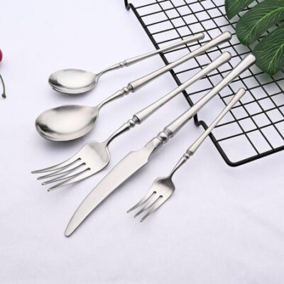 Серебряный набор столовых приборов, матовый набор посуды из нержавеющей стали 18/10, нож, вилка, кофейная ложка, набор столовых приборов, можно мыть в посудомоечной машине, набор столовой посуды серебряный