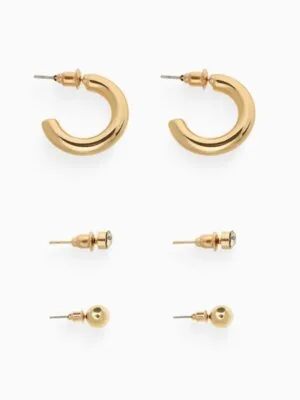 Откройте для себя мир элегантности и стиля с этим набором, который включает три пары серьг в золотистом цвете. Эти украшения идеально подходят для женщин, которые ценят минимализм и изысканность в своем образе. Каждая пара серьг станет прекрасным дополнением к вашему гардеробу, позволяя вам легко менять стиль в зависимости от настроения и случая.Изготовленные из качественного металла с вставками из страз, серьги имеют длину 8,5 см и застёжку пусет (гвоздик), что обеспечивает надежную фиксацию и комфорт при носке. Золотистый цвет фурнитуры придаёт им особую роскошь, а минималистичный дизайн делает их универсальными для любого наряда — будь то деловая встреча или вечерний выход.Многообразие стилей: три пары серьг позволяют вам экспериментировать с образом, подбирая украшения под любое настроение и наряд.Комфорт и надежность: застёжка пусет обеспечивает легкость в использовании и надежную фиксацию на ушах.Качество материалов: прочный металл и сверкающие стразы гарантируют долговечность и привлекательный внешний вид.Идеальный подарок: этот набор станет отличным подарком для близких, добавляя нотку стиля в их повседневную жизнь.Универсальность: серьги прекрасно подойдут как для повседневного ношения, так и для особых случаев, подчеркивая вашу индивидуальность.Выбор этого набора серьг — это не просто приобретение украшений, а возможность выразить свою индивидуальность и стиль. Позвольте себе сиять с этими элегантными аксессуарами, которые будут радовать вас каждый день!
