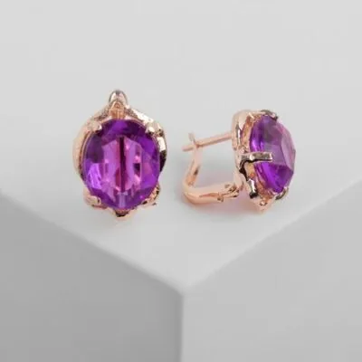 Серьги со стразами «Эдель» овальчик, цвет фиолетовый в золоте