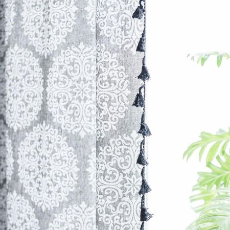 Серый цветочный принт Высококачественный простой современный высококачественный затемняющий чехол для эркера с кисточками и полузатенением, крючки для карманов для удочек 150x160cmGrommets Top