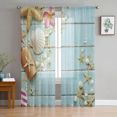 Shell Starfish Flowers Wood Grain Curtain Window Tulle For Living Room Bedroom The Kitchen Window Treatment Decorations Curtains W135 x H114cm