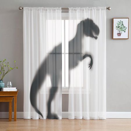 Шифоновые полупрозрачные шторы с силуэтом динозавра для гостиной, спальни, домашнего декора, оконные вуалевые тюлевые занавески W135 x H114cm