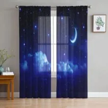 Ночное небо, звезды, луна, прозрачные шторы, окна в гостиной, тюль, шторы для спальни, кухни, украшения дома, вуаль, шторы W135 x H115cm x1&Rod Pocket