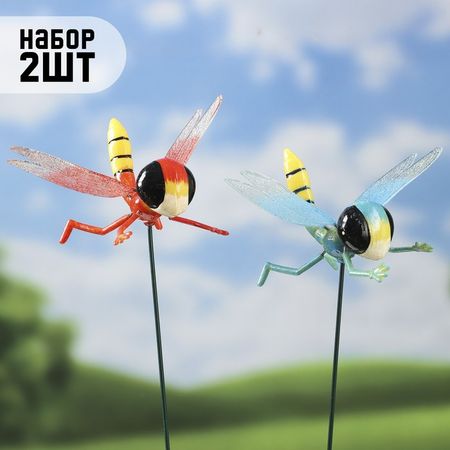 Набор садовых штекеров «Стрекоза волшебница» — это два декоративных элемента для оформления цветников и приусадебных участков. Комплект помогает создавать воздушные акценты в ландшафтном дизайне.Парная композиция: два штекера в наборе подходят для размещения у садового пруда или по краям альпийской горки. Количество элементов позволяет формировать сбалансированные дизайнерские решения.Выразительная высота: при длине 40 см фигурки стрекоз хорошо видны среди высоких цветов и декоративных злаков. Такой размер делает их заметным элементом садового оформления.Единство стиля: идентичный дизайн фигурок помогает создавать гармоничные парные композиции. Два элемента работают как взаимосвязанные части общего замысла.Динамика в саду: набор из двух штекеров добавляет в ландшафт ощущение лёгкости и движения. Парное размещение создаёт иллюзию застывшего в воздухе полёта стрекоз над садовыми растениями.